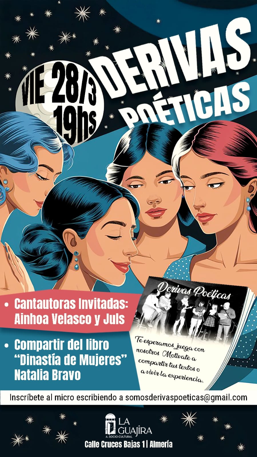 Aunque pedimos inscripción previa a las sesiones en somosderivaspoeticas@gmail.com, siempre habrá espacio para que te sumes en vivo.